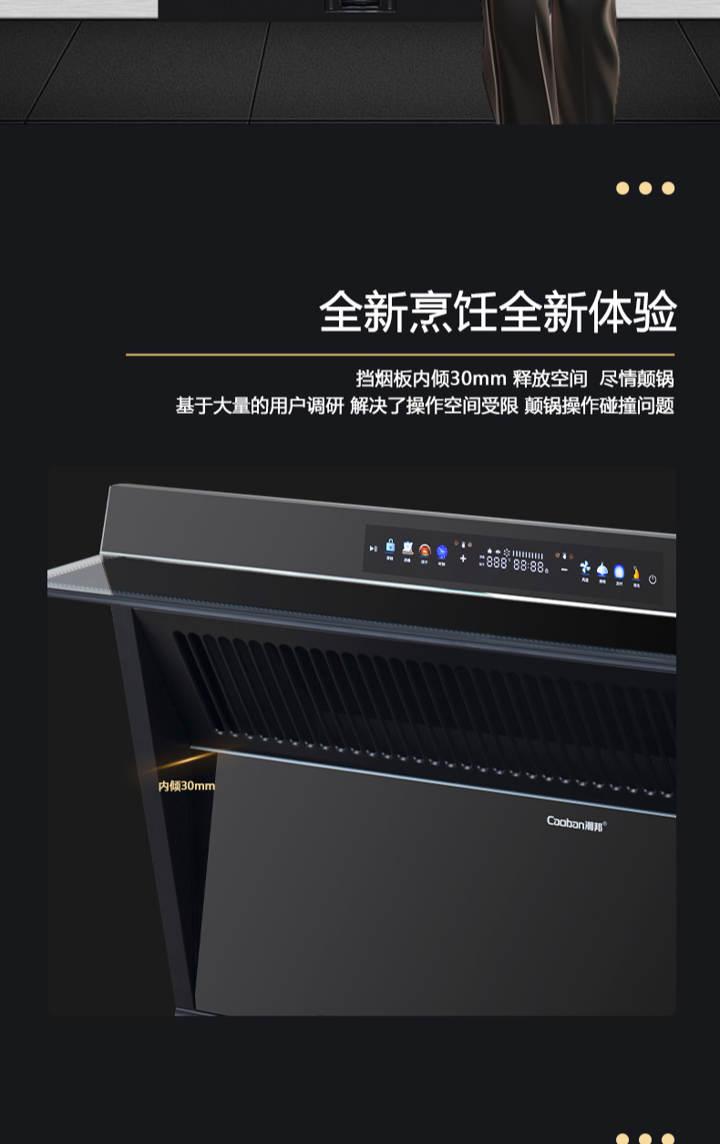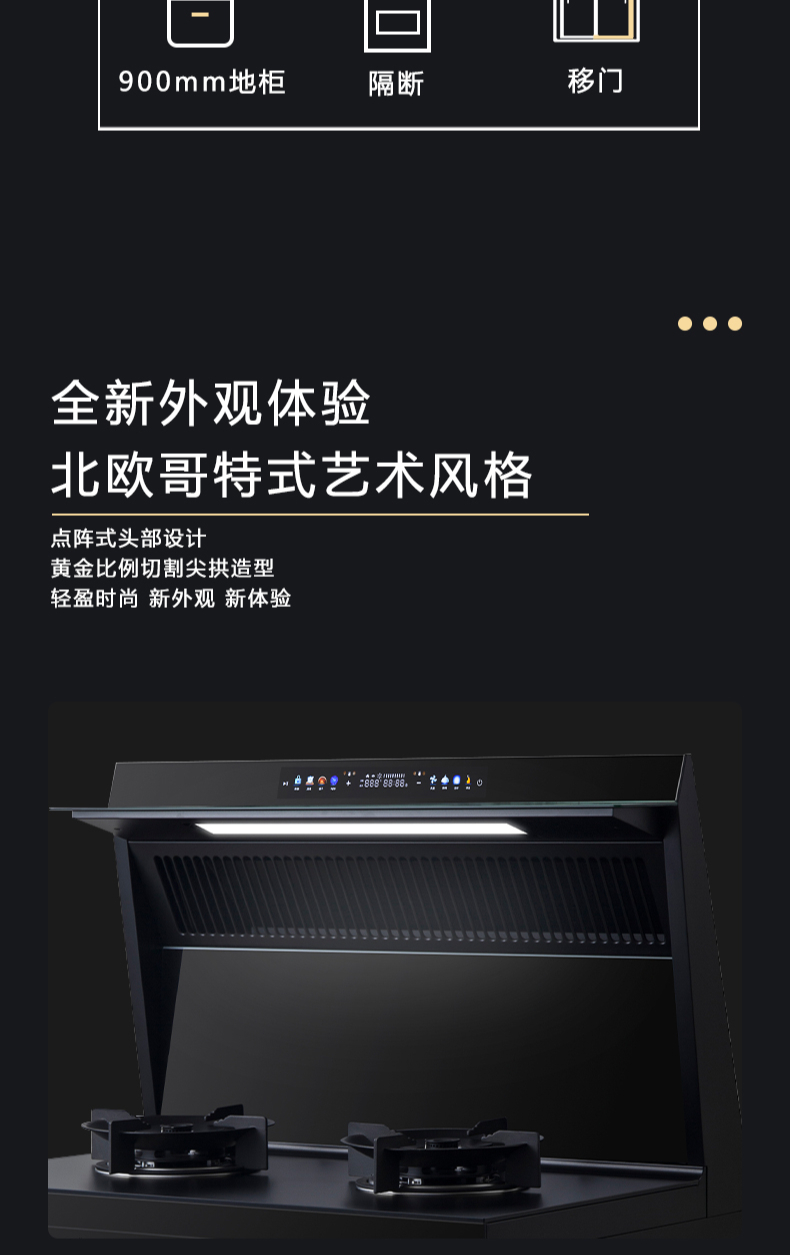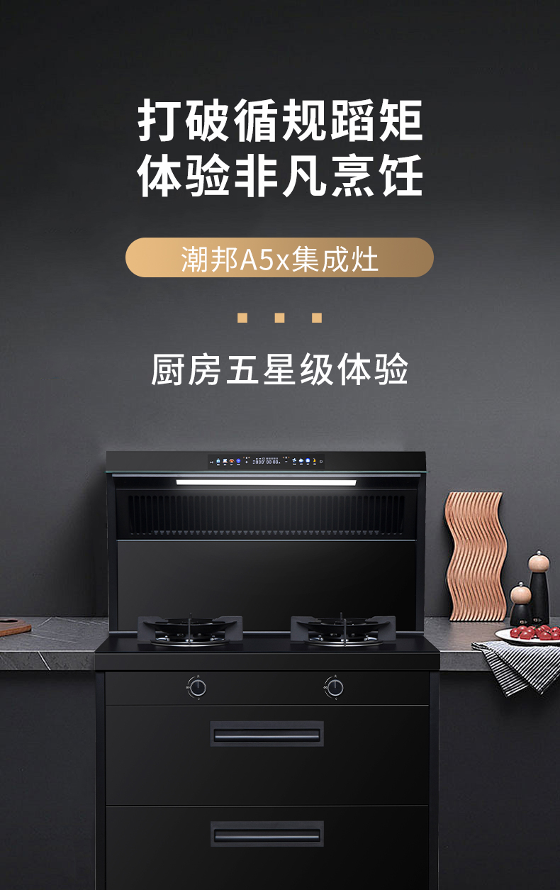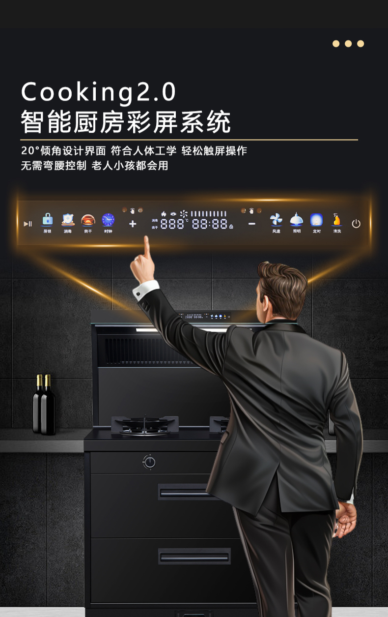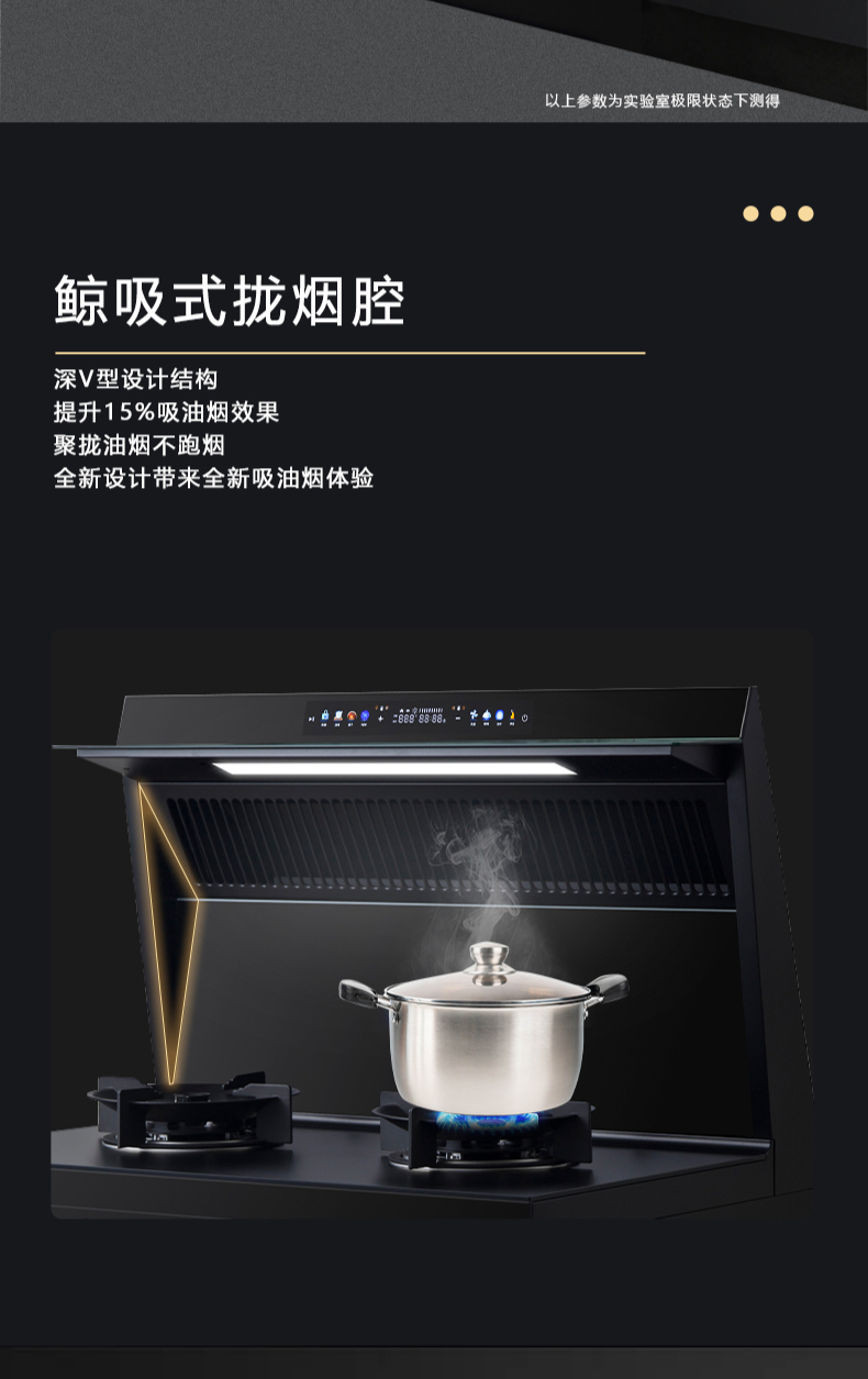 廚房七合一,26方超大巡航風(fēng)量,雙核驅(qū)動變頻控制,5kW大火力,揮手智控,電熱自清潔