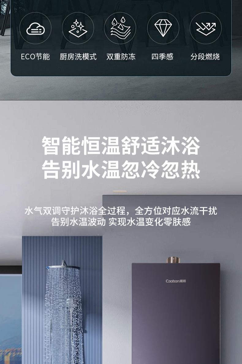 雙防凍型,智能比例控制,四季自動恒溫,低水壓啟動