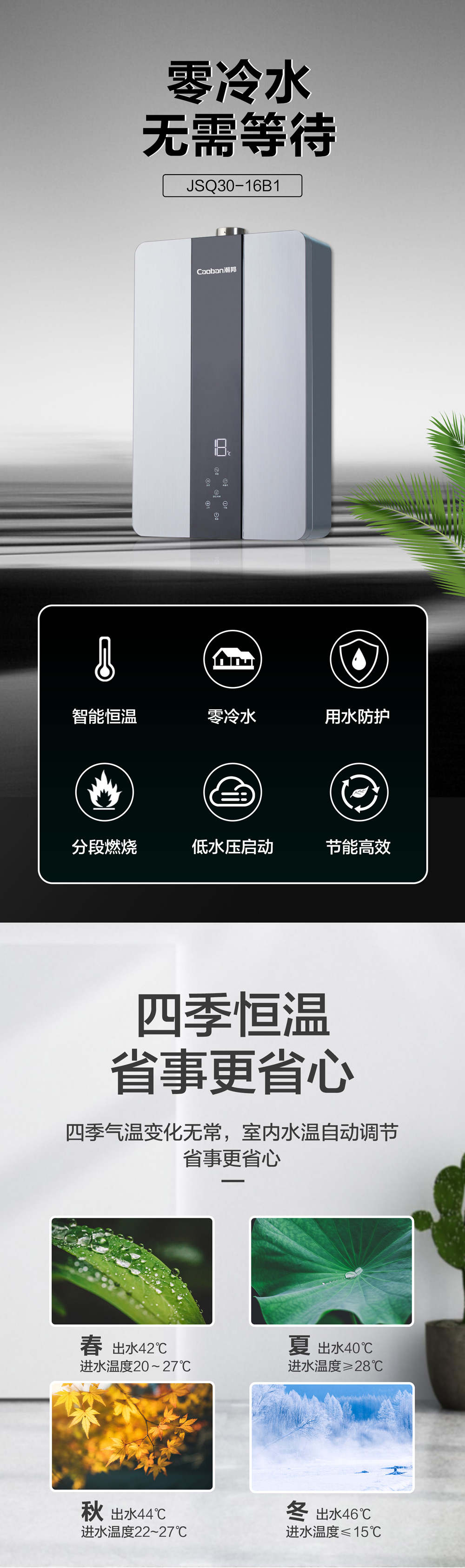 零冷水,智能恒溫,低水壓?jiǎn)?dòng)。